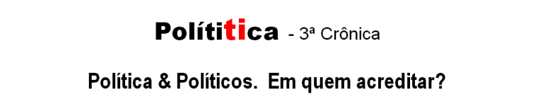 Verdade que a politização não passa de quimera; o indivíduo politizado é uma balela e o exercício de politizar – no que tange a tornar consciente dos deveres e direitos de cidadão, enfim, dar consciência política aos eleitores – está muito longe de se tornar realidade nesse país varonil, com seus 16 milhões de analfabetos; a maioria dos quais eleitores, votantes por obrigação como fiéis seguidores, com poder de decidir eleições regionais e de engrossar a estatística de votos válidos nacionais. A urna eletrônica é um santuário para eles. Por que o João da Silva disse que “a política é um produto fecal e os políticos fedem?”. Provavelmente o JS se politizou. Cada um responderá a seu modo. Eu, particularmente, já tenho uma opinião formada não é de agora. Bola pra frente; perdão, voto na urna, ou melhor, “aperta a tecla CONFIRMA”. Descanse em paz Brizola, longe da sua inimiga Urna Eletrônica. O José de Deus não pode viver sem ela e o João da Silva já comprou uma para treinar seus vizinhos.