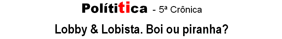 O terreno ainda está fértil para a proliferação dos lobistas. Torná-lo estéril vai depender da revisão de critérios convencionados, tais como, impunidade, lei do silêncio, morosidade da justiça, político sendo auditor de político nas CPIs, o povo não tendo acesso a informações mais técnicas (prestações de contas das Prefeituras nos Tribunais de Contas dos Estados e destes para a União), etc, etc. A propósito, CPI quer dizer “Coisa Pra Imbecil”, ou, pra quem preferir, “Coisa Pra Idiota”. Está na moda a sigla CPMI, que quer dizer “Coisa Pra Maiores Ignorantes”.