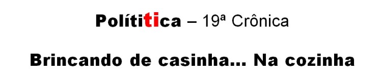 Uma voz feminina, indicando animação ou incitamento, ecoa pela casa: “Eia, garotada, é hora do lanche”. Todos, sem exceção, correram pra cozinha. Brincar de casinha dá fome – todos concordam. No caminho, um rapaz imberbe falou: “Precisamos comer bastante pra continuarmos com a brincadeira”. O que vinha atrás retrucou: “Vamos comer o suficiente. Quem come muito é político. A propósito, é o que todos eles querem com essa tal Reforma Tributária, porque muitos políticos também são empresários da atividade privada”. O menino, serra-fila, vinha puxando o coro: “É hora do lanche; que hora tão feliz! Queremos comer o tobas do Luiz”. Menino educado esse; substituiu a palavra cu por tobas. Um discreto menino disse baixinho: “Cuidado, Luiz é o nome do nosso presidente”.