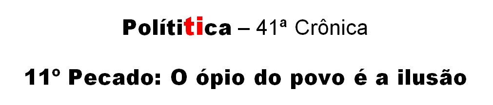 Cada dia que passa eu me convenço mais que o ópio do povo não é o futebol, não é o samba, nem a praia, não é a cachaça, nem a mulher brasileira. Simplesmente, concluí que “o ópio do povo é a ilusão”.
