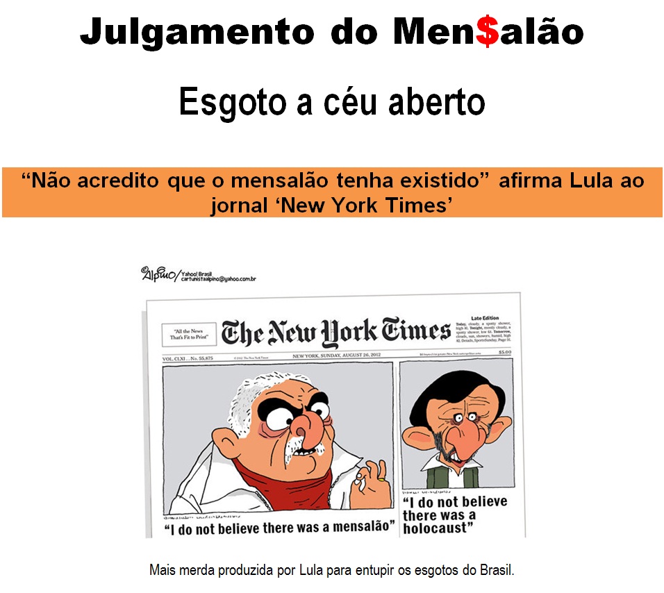 Perguntei a uma pessoa se ela se lembrava do que tinha comido no jantar de ontem e ela me respondeu que não se lembrava. Pois bem, isso mostra claramente a desenvoltura cerebral do nosso povo. Os noticiários sobre o julgamento tenderão a perder força e tudo cairá no absoluto esquecimento. E o Mensalão? Não sei… Ouvi falar… Sei lá… O que é isso? Novos escândalos surgirão substituindo os mais antigos e o ciclo dos crimes iniciar-se-á, ou melhor, jamais foi interrompido – a imprensa é que dá pausa para descanso, enquanto o Estado de Direito medita sobre a lei dos homens. A depuração do terreno político é fator imperativo, fato corroborado pelos votos do Ministro Luiz Fux e Cármen Lúcia Antunes Rocha; um ponto positivo.