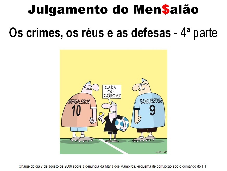 A população assiste estupefata ao julgamento da Ação Penal nº 470 – Processo do Mensalão e não faz ideia que os esgotos de Brasília estão entupidos com outros escândalos de igual ou maior gravidade, de modo que a qualquer momento podem estourar, espalhando detritos por todos os lados; há um ponto de saturação e não sabemos qual é. A audácia do Partido dos Trabalhadores avassala fronteiras, não tem limites. O governo vermelho de Lula, nos seus dois mandatos, decretou a falência da moralidade pública, usou a máquina governamental a favor de interesses espúrios e consolidou a corrupção como credo a ser seguido. Um sentimento de nojo, ojeriza, asco, sujeira, revolta e repugnância exerce direta influência na nossa capacidade de reação; perdemos as forças, arriamos os braços, porque na verdade chegamos à conclusão que não adianta discursos pras pirâmides, nada irá mudar enquanto a reprodução de ratazanas estiver fora de controle. De um lado a sangria desenfreada dos cofres públicos, do outro o povo clamando por melhores condições de vida, direito às oportunidades, por necessidades básicas satisfeitas. Enquanto a máquina mortífera da propaganda política dominar a ignorante massa eleitora – que não sabe dizer quais são as atribuições de um Vereador, quais são as funções do Prefeito, que desconhece totalmente o papel da Câmara e Prefeitura Municipais –, a leitura que fazemos do futuro é a pior possível. A cada eleição vemos reeditada, com agravos, a triste condição do povo brasileiro no que tange a sua participação no processo democrático do país. O sistema reinante, detentor do poder, se nutre da falência cultural da massa e dela extrai as bases do processo de dominação, portanto, não há interesse, e muito menos vontade política, na melhoria do ensino, da educação inclusiva e, sobretudo, não há a menor perspectiva para a salvaguarda da instituição família, refém do flagelo social, carente de oportunidades e sob o continuado domínio do tráfico de drogas pesadas. Estudos recentes apontam o Brasil como o maior mercado mundial de crack e de cocaína, ficando atrás somente dos Estados Unidos, com 4,1 milhões de americanos usuários no último ano pesquisado. Nos últimos 12 meses, cerca de 2,8 milhões de brasileiros fizeram uso de cocaína (inalada ou fumada), via consumo de crack ou de óxi (uma nova e devastadora droga, mais barata e agressiva do que o crack). A explícita incompetência do governo federal no combate direto ao tráfico a partir das nossas fronteiras só faz comprovar o que disse acima. A quem interessa esse status quo? Os nossos jovens estão trocando a cidadania pelo vício. Dominados pelo vício virtual, digo eu, os doutos advogados de defesa, sob a égide da “referência sensacionalista”, escoraram-se em citações de Fernando Pessoa, de Juristas famosos, de músicos e compositores contemporâneos, para que todos acreditassem que a Agência do Banco Rural localizada no 9º andar de um Shopping Center de Brasília era uma casa de massagem para principiantes gays sem fins lucrativos, de modo que a lavagem de capital é um tema extremamente complexo para quem só entende de prazeres subjetivos. Nesse viés, chamo a atenção para certos dogmas jurídicos, a exemplo, do que alguns oradores pleitearam na Tribuna do STF: o indício insuficiente não é indício; a seara dramática da hipótese deixa falsas as pisadas da Justiça; o STF tem papel constitucional e não criminal; a execração da opinião pública não deve influenciar desfavoravelmente o ato de julgar; parâmetros de decência são a pura ética do razoável; a grandeza social é intangível; o respeito às normas de garantias só afiança o princípio de culpabilidade; responsabilizar direta e objetivamente pessoas de bem nesse processo foi o mais que se fez; o ônus da prova cabe ao MPF que tem que provar os crimes cometidos e citados na peça da denúncia e aos advogados de defesa cabe a função de fazer o desagravo moral. O último ato da defesa, comparado ao último pedido do condenado à morte, sem direito ao encaminhamento da alma por padre ou serviçal divino. Teorias conspiratórias políticas por mais que quiséssemos invocá-las deixo por conta das Torres gêmeas, cuja queda 11 anos faz hoje. O nexo causal (nexo de causalidade), como elemento necessário para se configurar a responsabilidade civil do agente causador do dano, não deve ser um enfeite, na consideração da defesa. Ainda que o julgamento da Ação Penal nº 470, Mensalão, seja emblemático, é de se destacar que o PT, mais do que nunca, foi responsável em rotular todos os políticos brasileiros como desonestos, atirados na mesma vala comum. Conversando com um Deputado Estadual, que me pediu para não revelar o seu nome e tampouco a sua agremiação partidária, ele disse: “A incompetência provada do PT em roubar e não saber esconder o roubo; o não saber governar deixa de ser o mais importante”. Seriam os digníssimos Ministros da Suprema Corte os “verdugos” da Constituição? As sustentações orais da defesa dos réus seriam um ritual obsoleto? Um choque de serenidade cabe nesse momento. Meandros dos recursos jurídicos na pauta do dia, de tal sorte que foram aventados os Tribunais Internacionais. Uma combinação de disco arranhado com agulha quebrada para penalizar os meus ouvidos: “O meu cliente não tinha conhecimento da existência de valores”. Para se pegar barriga a mulher não sabia que antes deveria ter relações sexuais com o seu homem. Foram incontáveis saques; foram incontáveis envelopes pardos e de outras cores; foram incontáveis inocentes na boca do caixa pegando a hóstia consagrada para a limpeza da carne, produzida pelo Banco Rural e BMG, cuja matéria prima, trigo de excelência, vinha do Banco do Brasil e da Câmara Federal. Inocente gestão fraudulenta; administração marcada pela fraude um acaso. Os empréstimos