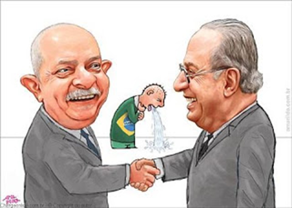 O Núcleo Político do PT, enterrado até o pescoço no lamaçal do Mensalão, é o que realmente interessa no contexto da AP 470, sobretudo quanto ao julgamento do quesito Corrupção Ativa. Logicamente, os demais réus e corréus envolvidos na trama delituosa também vão se ferrar. Com a espinha quebrada, o Partido dos Trabalhadores tem marcada uma cirurgia em Cuba, onde são encontrados os maiores e melhores especialistas nesse tipo de fratura óssea. Com relação ao traumatismo craniano, Lula pediu socorro a Hugo Chávez, reeleito presidente da Venezuela por mais 06 longos anos, derrotando o candidato oposicionista Henrique Capriles. Com essa vitória, Hugo Chávez pode ficar no poder até 2019, quando completará 20 anos na presidência do país – isso se não morrer antes de “causas naturais”. Este fato causou inveja ao ex-presidente-metalúrgico-mensalário, Lulababá, porque não conseguiu o mesmo feito aqui nessas terras de Cabral. Com efeito, para ocupar o tempo ocioso de que dispõe, Lula informou a Hugo Chávez que lhe encaminharia currículo atualizado com todas as informações sobre o modus operandi da quadrilha do Mensalão, candidatando-se a auxiliar o seu coirmão venezuelano no que toca ao projeto de aprofundamento da revolução socialista. Através do órgão eleitoral da Venezuela Hugo Chávez mandou uma nota oficial ao ex-barbudo de nove dedos: “Maricón, hijo de la puta, vá se cagar”. Restou-lhe a Bolívia. Foi aí que ligou para Juan Evo Morales Ayma, presidente daquele país companheiro, pedindo um “hacerle un favor”. Evo Morales: “Vá se foder, sua bicha petista”. O ignorante do Lula esqueceu que Evo Morales aprendeu a falar o Português com desenvoltura quando passou a frequentar a nossa ex-usina de gás natural com a bandeira Petrobras, expropriada pela Bolívia no governo dele, Lula, que, de quatro e humilhado, não fez absolutamente nada. O Brasil perdeu aqueles ativos nacionais. Escândalo internacional até hoje não superado. Paulo Salim Maluf deverá acolhê-lo, liberando Lula da apresentação de referências pessoais e de diplomas. Nas boas-vindas Maluf presenteará Lula com uma prótese de dedo mindinho, cuja utilização está prevista no CAP – Código Aético Público.