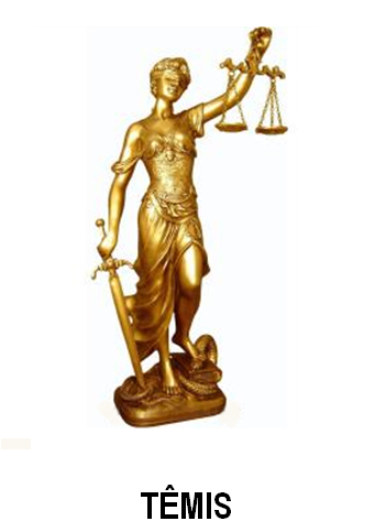 “É uma divindade grega por meio da qual a Justiça é definida, no sentido moral, como o sentimento da verdade, da equidade e da humanidade, colocado acima das paixões humanas. Por este motivo, sendo personificada pela deusa Têmis, é representada de olhos vendados e com uma balança na mão. Ela é a deusa da Justiça, da Lei e da Ordem, protetora dos oprimidos. Na qualidade de deusa das Leis eternas, era a segunda das esposas divinas de Zeus, e costumava sentar-se ao lado do seu trono para aconselhá-lo. Teria partido dela o conselho ao deus para proteger-se com a Efígie (Aigis), a fim de vencer a luta contra os gigantes. Dizia-se a respeito de Têmis que ela teve a ideia de provocar a Guerra de Tróia para livrar a Terra do excesso de população (KURY, 1999, p. 372). Era filha do Céu (Urano) e da Terra (Gaia), portanto é filha do Espírito e da Matéria. Mãe das Horas, que regiam as estações do ano, e das Moiras. Por suas virtudes e qualidades, Têmis foi respeitada por todos os deuses. Sua grande sabedoria só era comparável à de Minerva. Suas opiniões eram sempre acatadas. Mais do que a Justiça, Têmis encarna a Lei. Seu casamento com Zeus exprime como o próprio deus pode ser submetido a ela, que ao mesmo tempo é sua emanação direta. Tradicionalmente é representada cega ou com uma venda aos olhos para demonstrar sua imparcialidade. Numa visão mais moderna, é representada sem as vendas, significando a Justiça Social, para qual o meio em que se insere o indivíduo é tido como agravante ou atenuante de suas responsabilidades. Os pratos iguais da balança de Têmis indicam que não há diferenças entre os homens quando se trata de julgar os erros e acertos. Também não há diferenças nos prêmios e castigos: todos recebem o seu quinhão de dor e alegria. Ela foi aceita entre os deuses do Olimpo. Simboliza o destino, as Leis eternas, divinas e morais; é a Justiça emanada dos deuses, assim nos seus julgamentos não há erro. Ela carrega as Tábuas da Lei, que desempenham o papel de ordem, união, vida e princípios para a sociedade e para o indivíduo, e uma balança que equilibra o mundo segundo Leis universais entre o caos e a ordem. (GRIMAL, 1997, p. 435)”.