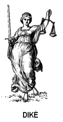 “Divindade grega que representa a Justiça, também conhecida como Dice, ou ainda, Astreia. Filha de Zeus e Têmis, ela não usa vendas para julgar. De acordo com Ferraz Júnior (2003, p. 32-33), os gregos colocavam a balança com os dois pratos na mão esquerda da deusa Diké, mas sem o fiel no meio, e em sua mão direita estava uma espada e estando de pé com os olhos bem abertos declarava existir o justo quando os pratos estavam em equilíbrio. O fato de que a deusa grega tinha uma espada e a romana não, mostra que os gregos aliavam o conhecer o direito à força para executá-lo. (FERRAZ JÚNIOR, 2003, p. 32-33)”.