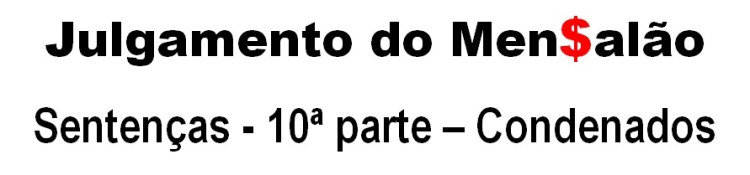 Supremo Tribunal Federal, sessão de quarta-feira, 21 de novembro de 2.012, sob a presidência interina do Ministro relator Joaquim Barbosa (cuja posse oficial dar-se-á na quinta-feira, dia 22), em regime de continuidade de julgamento da Ação Penal nº 470, foi retomada a leitura dos votos concernentes às dosimetrias dos 05 réus abaixo. Segundo o ex-presidente do STF, Ministro Carlos Augusto Ayres de Freitas Britto, do 12º ao 25º, todos os condenados são considerados “réus avulsos”, mas que tiveram papel preponderante no esquema criminoso do Mensalão, não só no apoio direto, como também nos delitos praticados pela quadrilha, objetiva e subjetivamente.