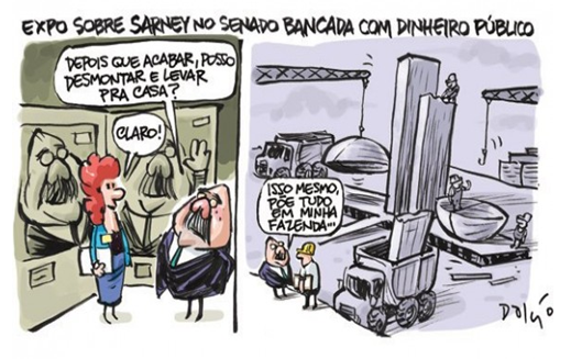 O Senado Federal está mais sujo do que pau de galinheiro, os seus odores fétidos vão muito além das cercanias de Brasília. A Câmara dos Deputados não fica atrás, fábrica produtora de excrementos, com funcionamento a todo vapor. Os motivos de tanta porcaria são sobejamente conhecidos por uma diminuta parcela da população que se interessa pelos rumos do país, infelizmente traçados pela política abjeta e por políticos devassos. Mergulhada num estado de profunda ignorância, a esmagadora maioria dos brasileiros não se dá conta dos crimes que são cometidos diuturnamente em seu nome, com o seu aval. Desmandos, desrespeito à coisa pública, desgovernos, roubos generalizados, falcatruas, conchavos, quebra de acordos, são apenas alguns expedientes empregados pelos grupos de fanfarrões que habitam os Poderes da República e juram exercê-los segundo ditames constitucionais. O papel do Congresso Nacional vai muito além de criar e aprovar Leis, de fiscalizar o Estado Brasileiro, de administrar e julgar atos, os seus integrantes (81 Senadores e 513 Deputados Federais) deveriam ser os primeiros a dar o exemplo como representantes do povo e fazer por merecer a confiança que lhes foi depositada através das urnas. O que temos visto são práticas contrárias a tudo isso. A Exposição “Modernidade no Senado Federal – Presidências de José Sarney” não deixa a menor dúvida de que os nossos políticos estão onde estão para defenderem os interesses pessoais e legislarem em causa própria. Infelizmente, deixam herdeiros.