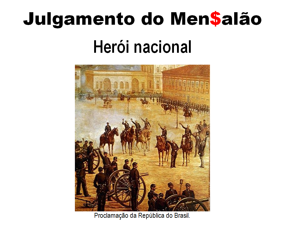 No dia em que o Brasil comemorou o 124º aniversário da Proclamação da República, o herói nacional foi o Presidente do Supremo Tribunal Federal, Ministro Joaquim Barbosa, relator do processo do Mensalão, que culminou na Ação Penal 470. Joaquim Barbosa, assim como o Marechal Deodoro da Fonseca, será lembrado pelos próximos 124 anos. Os livros de história nos ensinam que a Proclamação da República do Brasil foi uma sublevação político-militar ocorrida no dia 15 de novembro de 1889, instaurando a modalidade de governo “Republicana Federativa Presidencialista”, até hoje praticada, reunindo os Estados numa Federação. Com o fim do poder soberano de Dom Pedro II, à época Imperador do Brasil, a Monarquia Constitucional Parlamentarista foi extinta definitivamente. Essa forma de governar, República Federativa (com viés democrático), pressupõe que a maioria ou a totalidade dos cidadãos exerce a sua autoridade suprema (vontade) através dos seus delegados escolhidos nas assembléias políticas – candidatos/representantes políticos eleitos por períodos de tempo fixos, relativamente pequenos, na particular visão desses mesmos políticos –, mas, isso não quer dizer, necessariamente, que o povo participa diretamente dos governos constituídos, de modo que a cada eleição, cumpre-se a obrigação de votar e logo as costas são dadas a tudo e a todos. O sistema presidencialista concede ao Presidente da República o posto de chefe do governo, que nomeia pessoalmente os Ministros encarregados de auxiliá-lo – hoje, mais atrapalham do que ajudam. O “absolutismo petista”, encarnado há 11 anos pelo Palácio do Planalto, tenta implantar a “República Unitária”, na qual toda a administração do país fica dependente do governo central; tentativa do passado que está se materializando na atualidade.