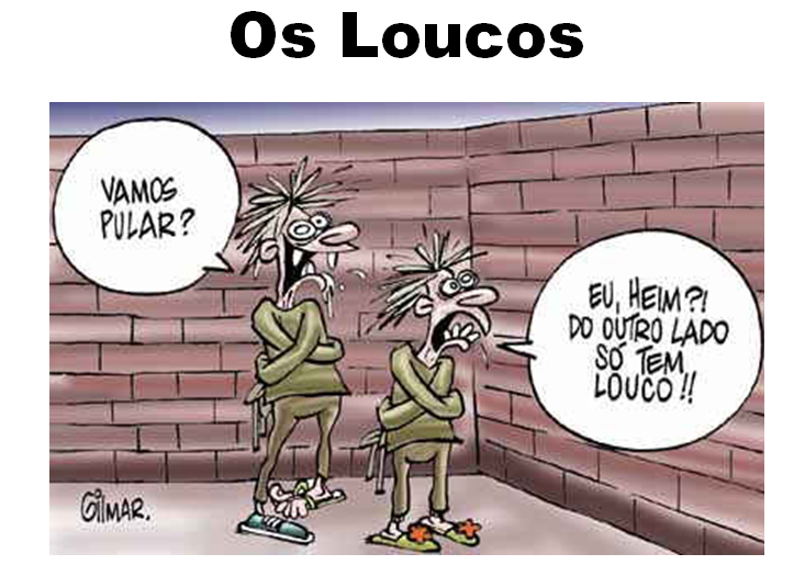 O cometimento de loucuras inocentes é engraçado, até atraem simpatizantes, que acabam aderindo à prática. Outras loucuras de comprovada gravidade acabam por prejudicar pessoas inocentes e podem comprometer sistemas de relacionamentos. É claro que não podemos levar todas as atitudes a ferro e fogo, muito ao pé da letra como se diz por aí. Dar uma de louco de vez em quando faz um bem danado, é saudável para a descompressão do fígado, caso contrário seremos internados num hospício qualquer, ou, na melhor das hipóteses, numa casa de repouso afastada dezenas de quilômetros da “sociedade anormal”, longe dos centros urbanos melhores classificados no ranking de qualidade de vida. Em ambos os casos, as visitas regulares de parentes e amigos ficam proibidas, salvo a dos advogados da família com a missão de concluir o processo de testamento. Dar um tiro certeiro nos miolos ainda está fora de cogitação, entretanto, outras formas menos dolorosas de suicídio individual estão sendo avaliadas.