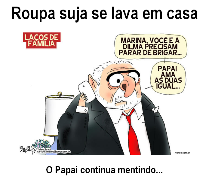 1Marina: – “Papai Lula, a Dilma está com muito medo de mim. Se eu for eleita, ela está achando que a mamata vai acabar, que a família perderá a fonte extra de dinheiro e que eu falarei mal de vocês dois pra todo mundo. Papai, eu prometo que ninguém saberá que você é ladrão, que você também ajudou a roubar a Petrobras”.