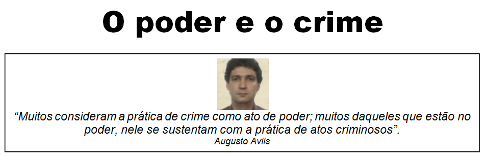 O poder e o crime convivem lado a lado de maneira que um exerce influência sobre o outro. Ainda que sejam duas sensações distintas, poder e crime, cada qual caminhando na sua própria estrada, lá na frente acabam se encontrando e criando vínculos de interdependência, sobretudo quando surge um terceiro agente, o dinheiro – acompanhado da facilidade de obtê-lo. Objetivos traçados, em um determinado momento da relação espúria, o canibalismo torna-se inevitável. O poder do mandatário nem sempre se sobrepõe à desobediência e à falta de juízo do criminoso paralelo. O “influenciador” muda de perfil quando lhe convém; quem manda passa a obedecer e quem é ordenado acaba mandando.