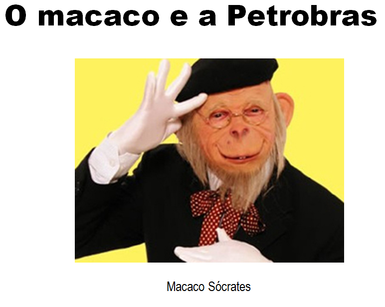 Nota de rodapé: O macaco Sócrates é uma criação do comunicador, ator e humorista paulista Orival Pessini (06 de agosto de 1944). Além do macaco Sócrates, Orival Pessini criou outros personagens como o macaco Charles, Fofão, Patropi, Juvenal, Ranulpho Pereira, Hitler, Clô, Frank, entre outros. Foi no programa humorístico da TV Globo “Planeta dos Homens”, na década de 70, que Orival Pessini interpretou os macacos Sócrates e Charles. O personagem Patropi surgiu em 1988 no programa “Praça Brasil”, da Rede Bandeirantes. Mais tarde foi convidado para atuar na “Escolinha do Professor Raimundo” (Globo) e na “A Praça é Nossa” (SBT). O macaco Sócrates imortalizou-se com o seu bordão: “Não precisa explicar; eu só queria entender!”.