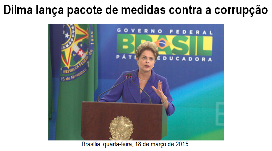 A postura do governo federal de querer apresentar trabalho – depois das manifestações deste último domingo, 15 de março de 2015, que levaram mais de três milhões de pessoas às ruas de todo o país – é prova de desespero, é prova de que realmente deixou de fazer o que deveria, é prova de que deve alguma coisa, é prova de que tem culpa no cartório, e, talvez, uma forma de tirar um pouco do peso que paira sobre os seus ombros. Essa medida, por exemplo, não tem efeito prático, porque outros pacotes anticorrupção estão nas gavetas do Congresso Nacional; ideias mirabolantes não faltam. O discurso político empregado pela presidente Dilma Rousseff na solenidade de hoje no Palácio do Planalto foi uma resposta às manifestações populares, exatamente como fez nos meses de junho e julho de 2013 – retórica, simplesmente retórica de palanque, nada mais. Se o governo quer realmente combater a corrupção, então que comece por ele próprio, que a presidente se deixe investigar no processo do Petrolão, que autorize a quebra do sigilo bancário e telefônico, não só dela, como de todos os seus 39 ministros. Há ratos que escaparam ilesos das ratoeiras, o pior, é que conseguiram levar bom pedaço de queijo para as tocas secretas.